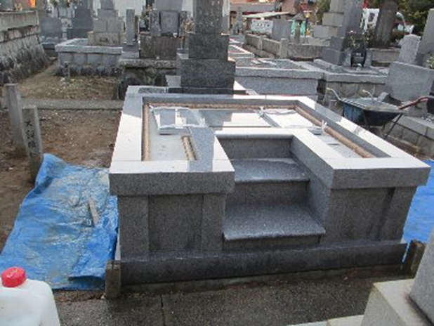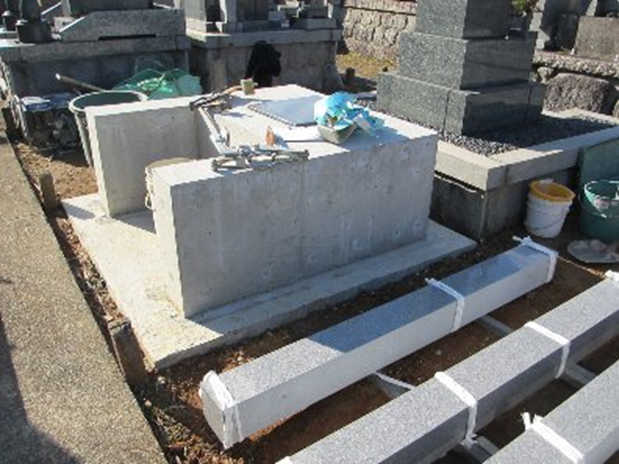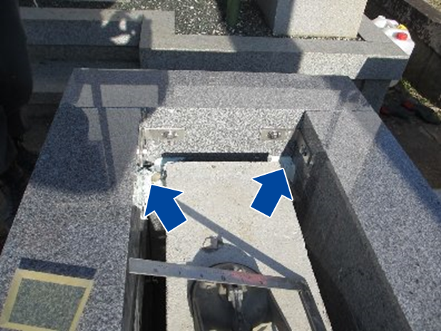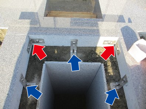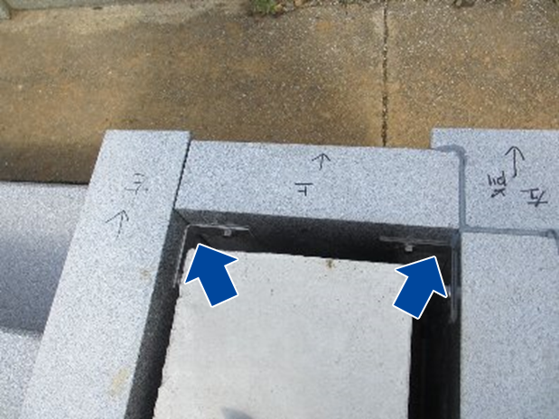 芝台の石材部分と基礎ベースをステンレスの金具にて一体化に!