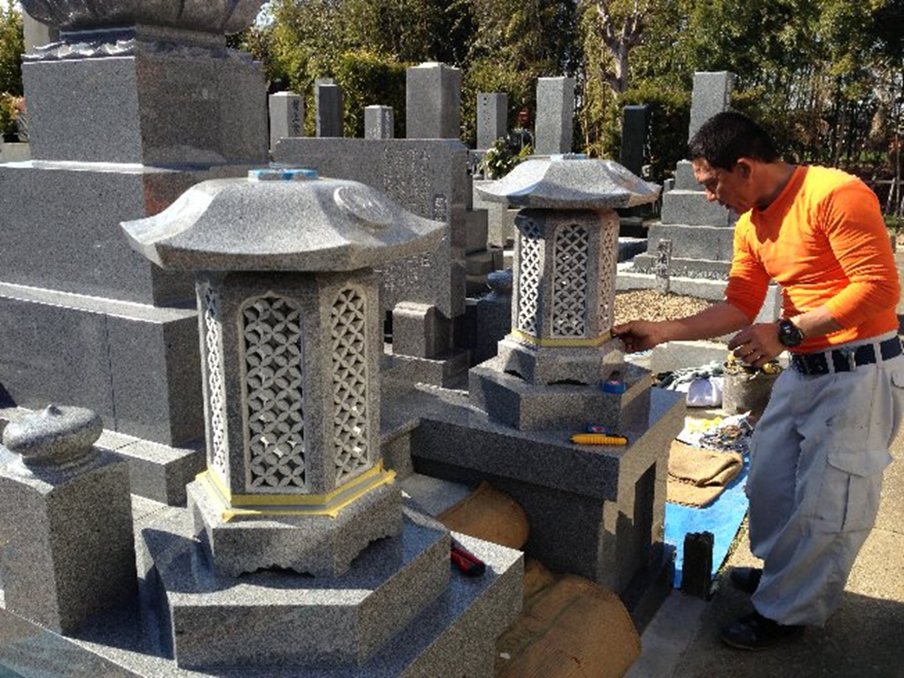 - 上台、蓮華、竿石をステンレスボルトにて一体化に